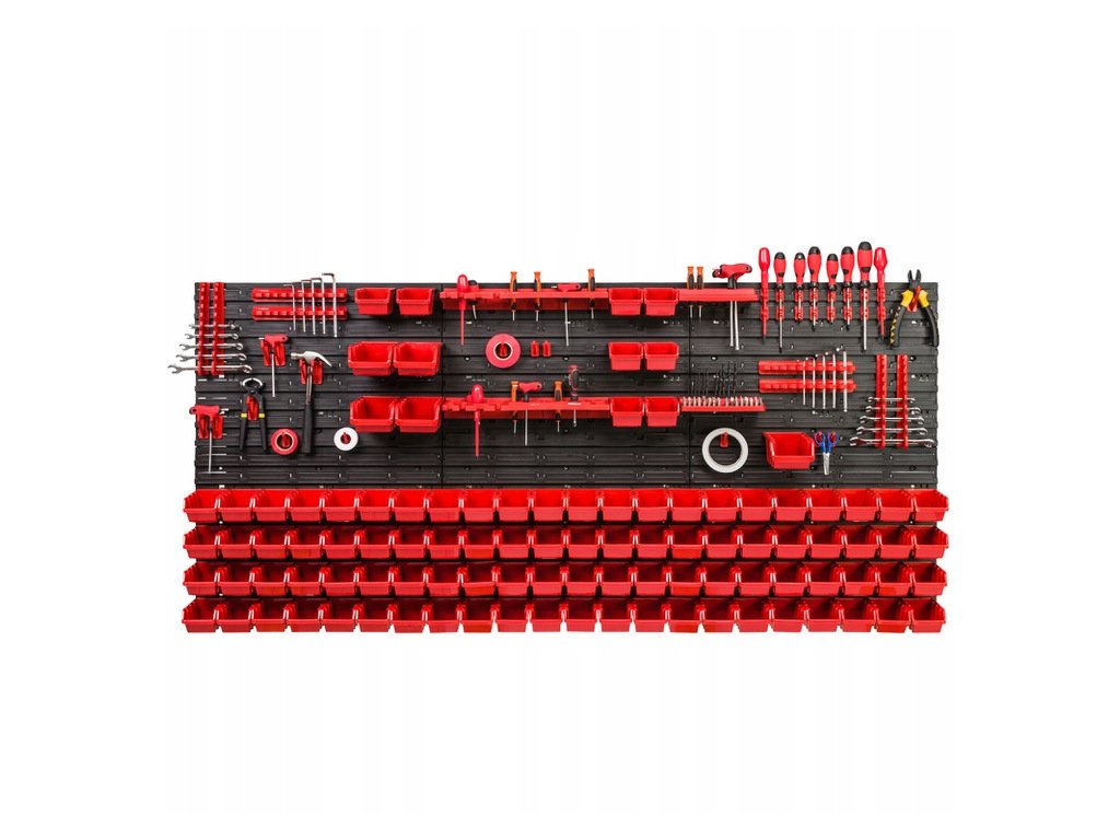 Organizér snadno připevníte na stěnu v garáži či dílně a do úložných boxů tří velikostí jednoduše uložíte všechny šrouby, matice, podložky a další spotřební materiál. Nástěnný organizér je vyroben z kvalitního plastu a rychle se stane nedílnou součástí každé garáže či dílny.